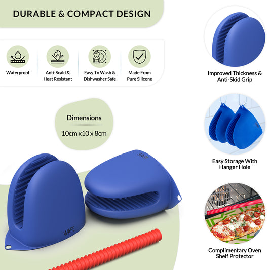 Mini oven gloves are small, heat-resistant kitchen accessories designed to protect your hands and fingers while handling hot cookware, baking sheets, and other kitchen items. These compact gloves are a practical and essential addition to any home cook's toolkit, ensuring safety and convenience in the kitchen