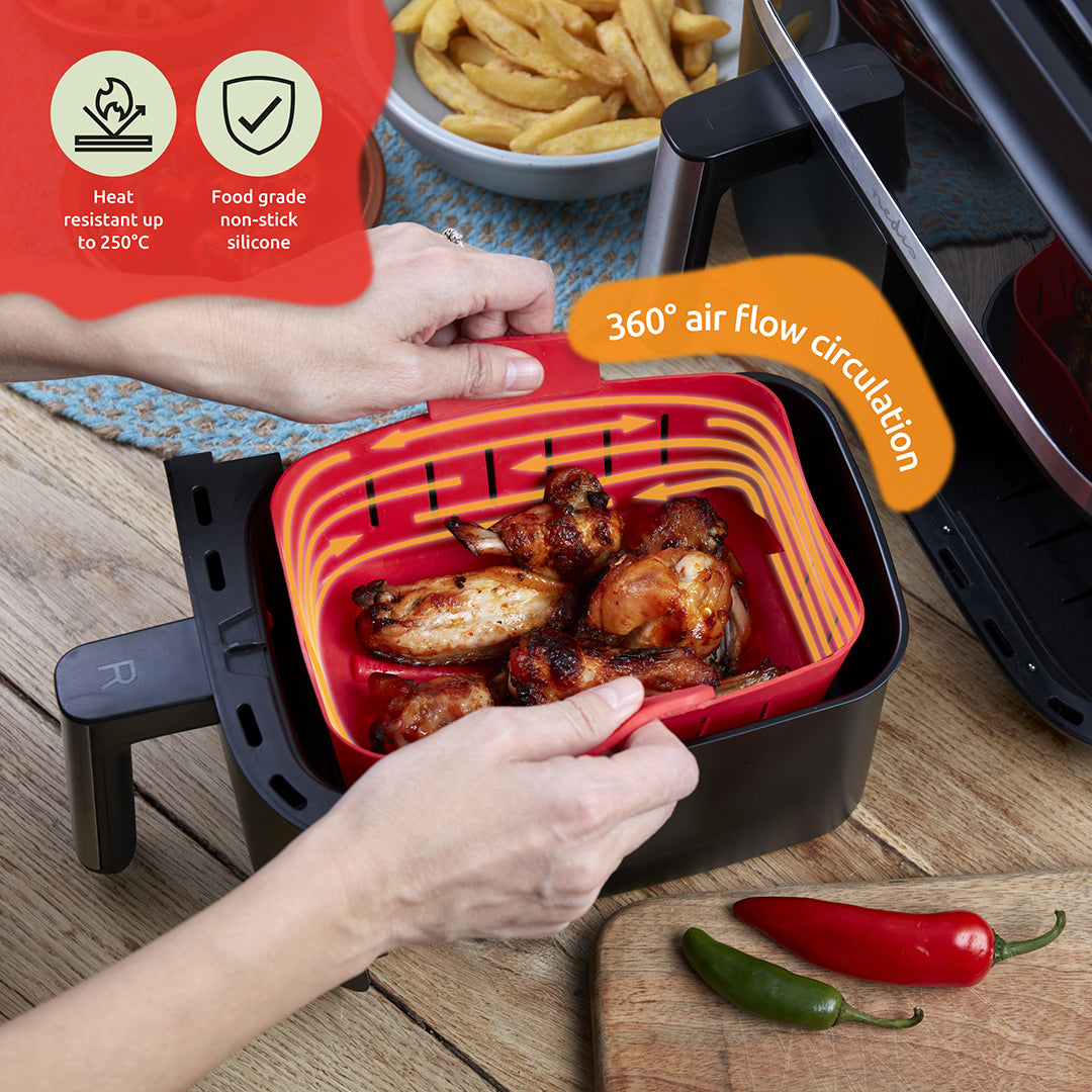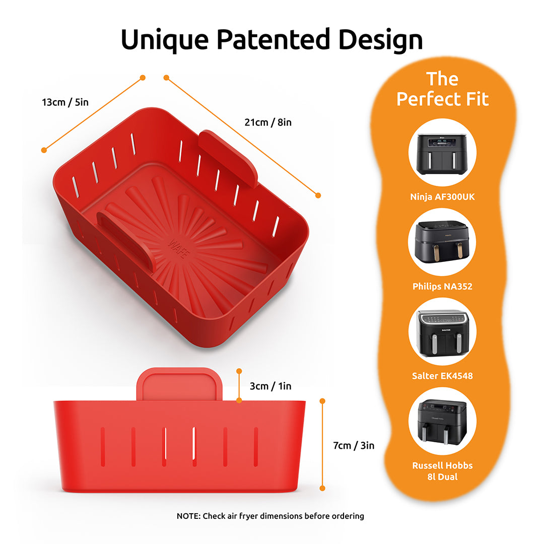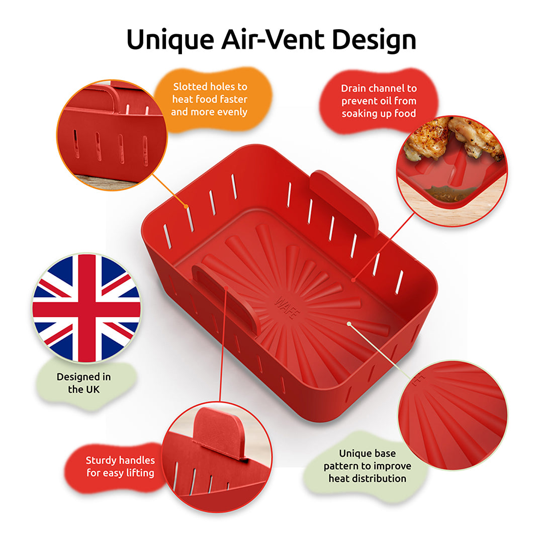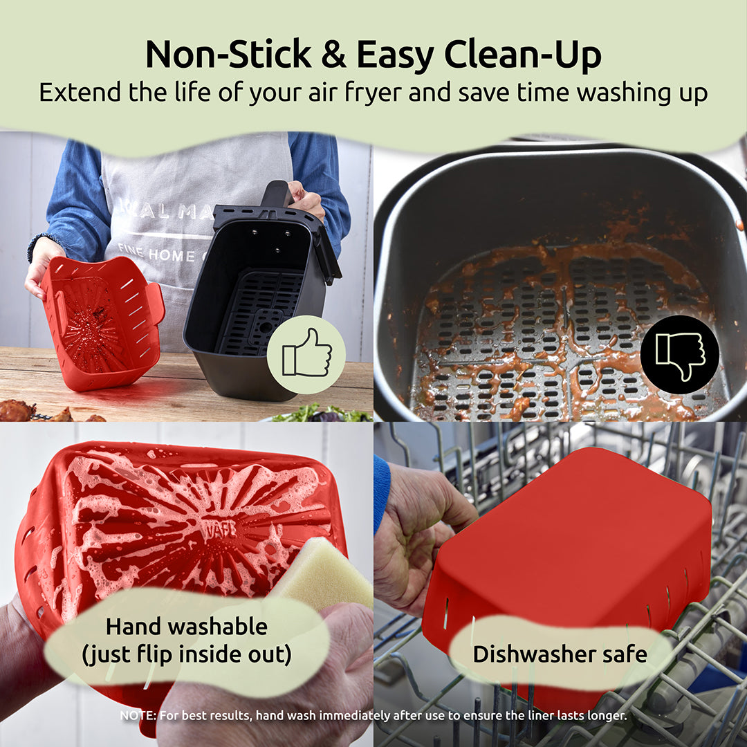 Calling all cooking adventurersπ¨βπ³ - Experience delicious, healthier fried food without the mess - with WAFE's food-grade silicone FDA approved air fryer liners. Our slotted holes ensure even heat distribution, while the easy-to-clean material makes your post-meal routine hassle-free. Let's get frying!