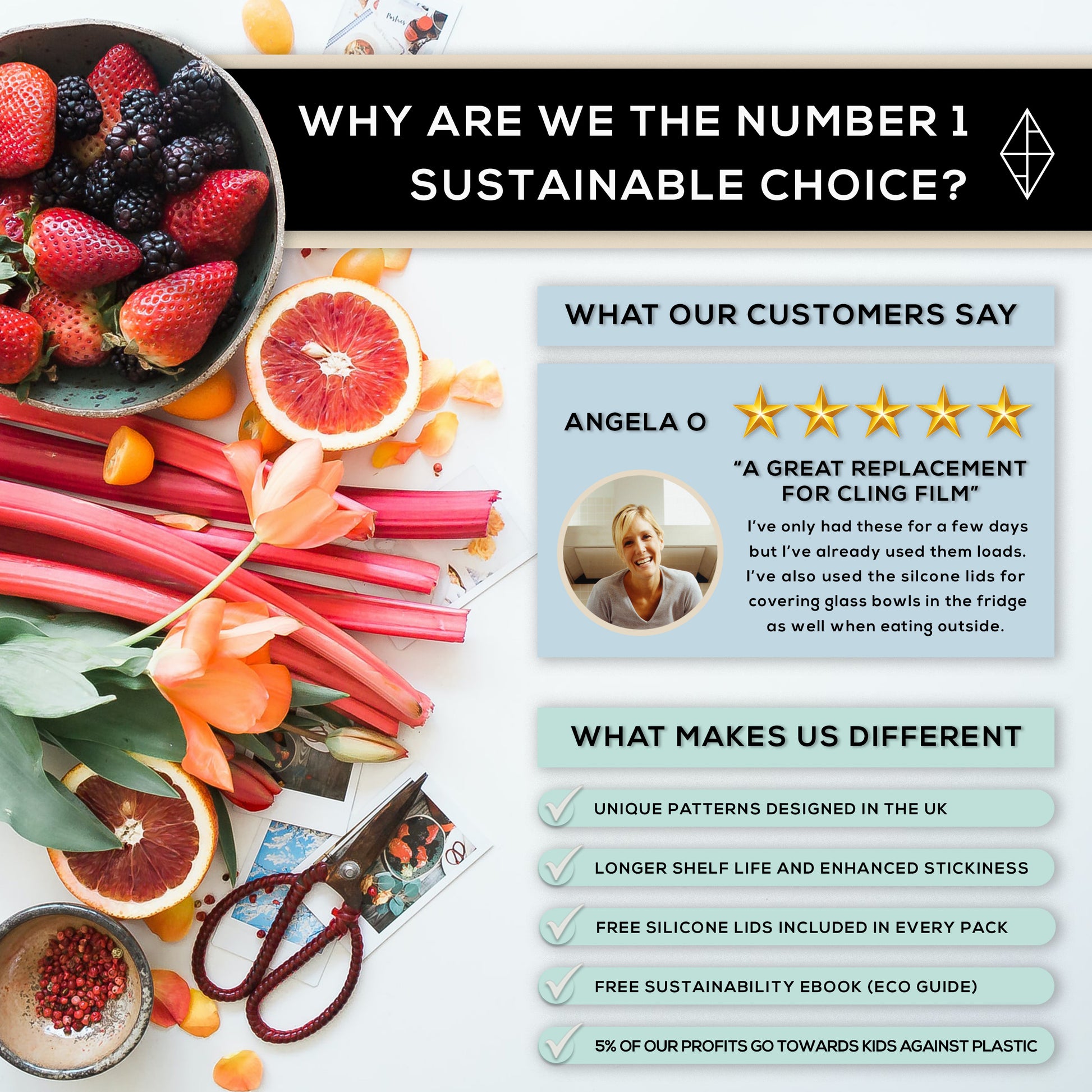 β πππ πππππππ & πππππππππππ -Β WAFE reusable beeswax wraps are the perfect sustainable alternative to plastic cling-film, saving you money. Our eco-friendly wrap set comes bundled with silicone food bowl covers as added bonus. Both easy to use and clean, making it great for everyday use or as the perfect Eco-gift whilst making a difference to our beloved planet