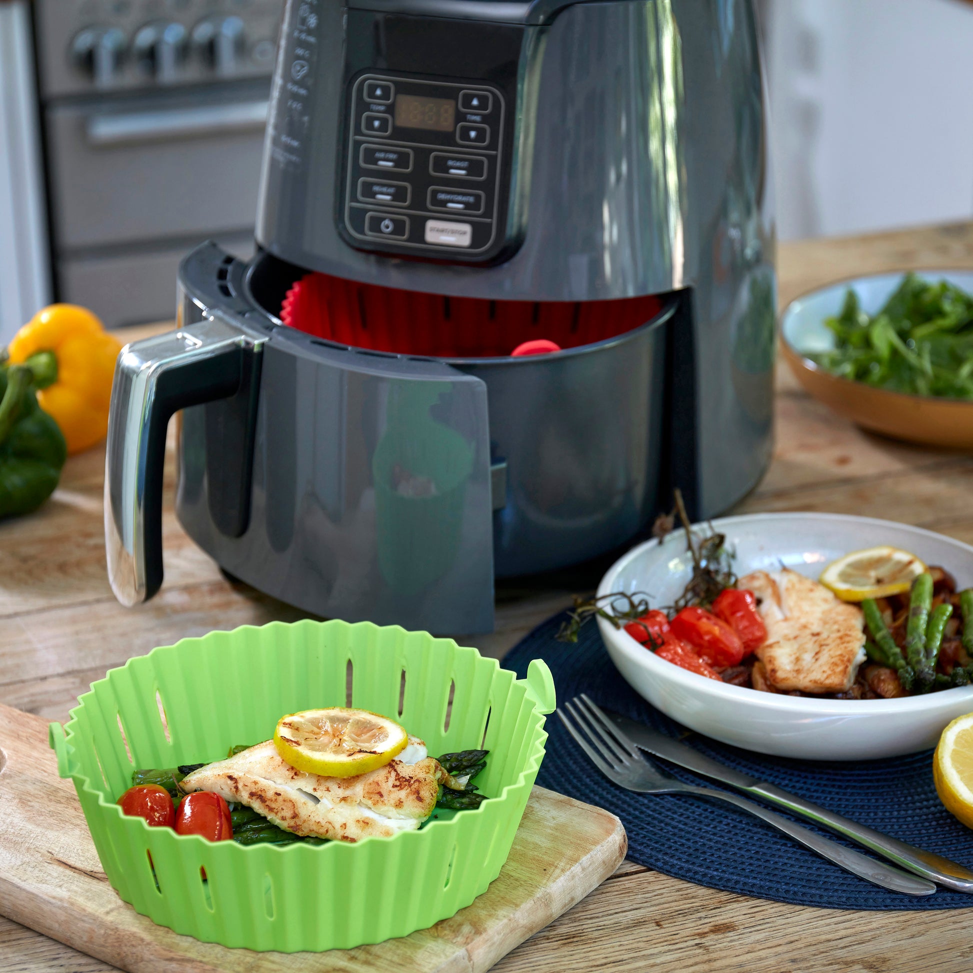 👨🍳 FOOD SAFE SILICONE - We use food grade FDA approved silicone because it is strong and flexible, making it a durable material for your air frying needs. It can also withstand temperatures up to 250° C, so you can cook with peace of mind