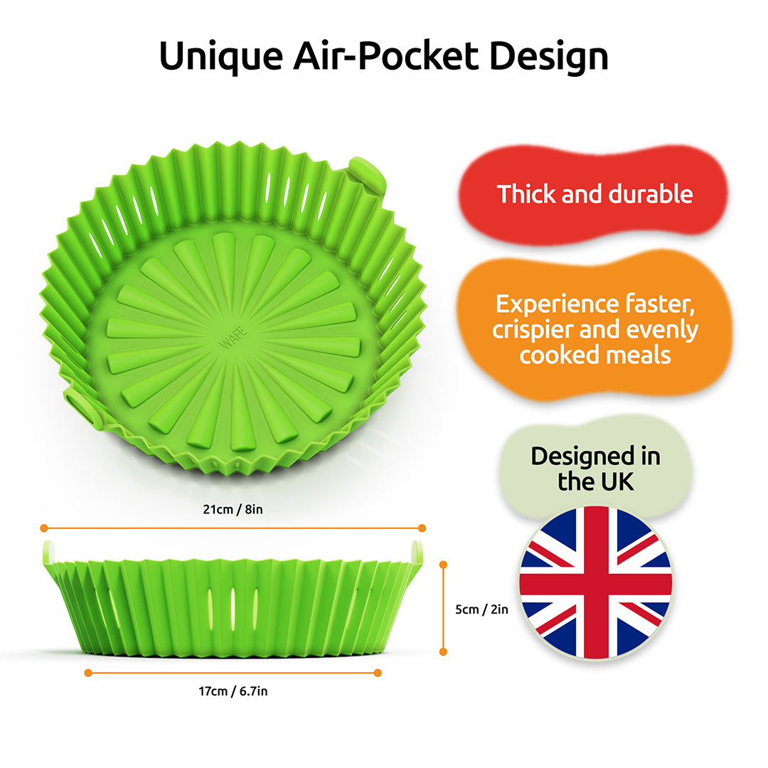 Calling all cooking adventurers👨🍳 - Experience delicious, healthier fried food without the mess - with WAFE's food-grade FDA approved silicone air fryer liners. Our slotted holes ensure even heat distribution, while the easy-to-clean material makes your post-meal routine hassle-free. Let's get frying!